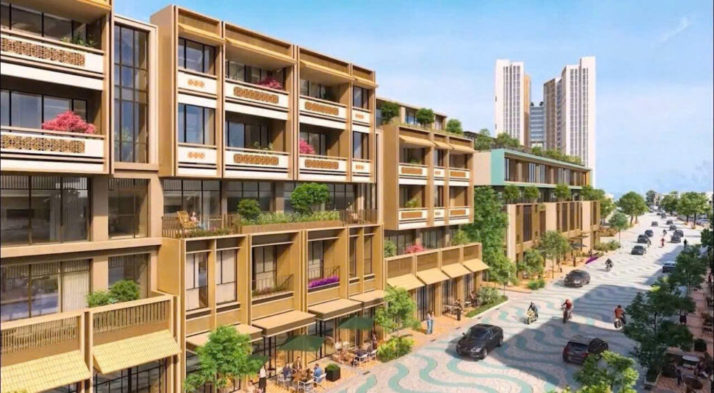 Tiện ích cư dân: Hồ bơi; clubhouse; vườn chơi trên cao; trục công viên trung tâm; café – shophouse liền kề
